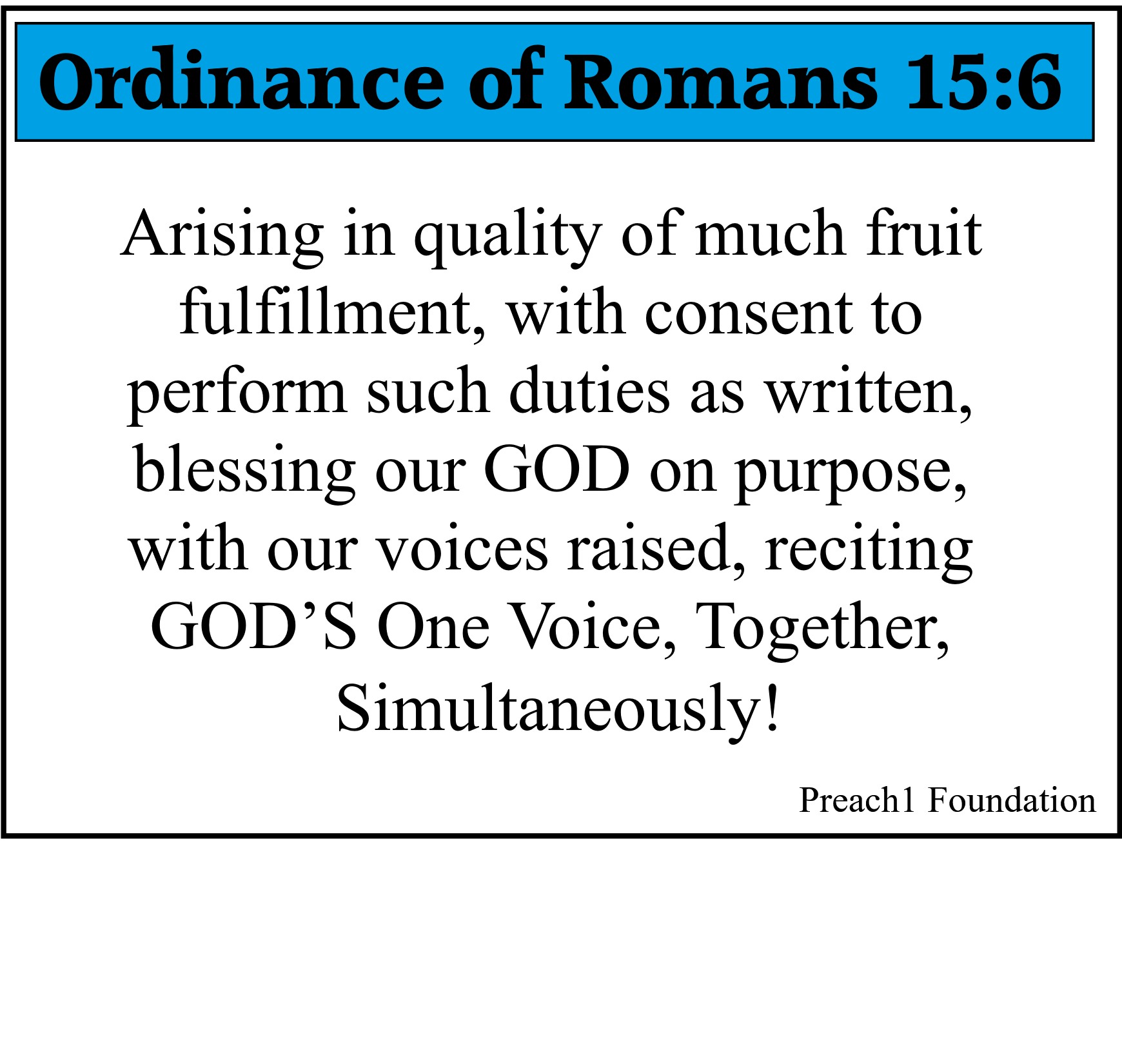 Preach1 isn't religion but an active march to glorify Father God by living a Rom 15:5-6 life.