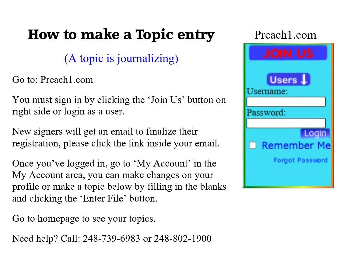 Hallelujah! Those wanting a login on Preach1 can simply call our in-take line 248-739-6983