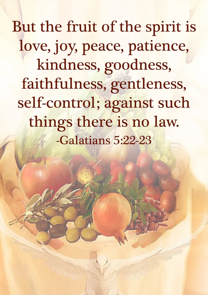 The fruit of the Spirit is what God gave us to live by daily. In Jesus Name, Amen!