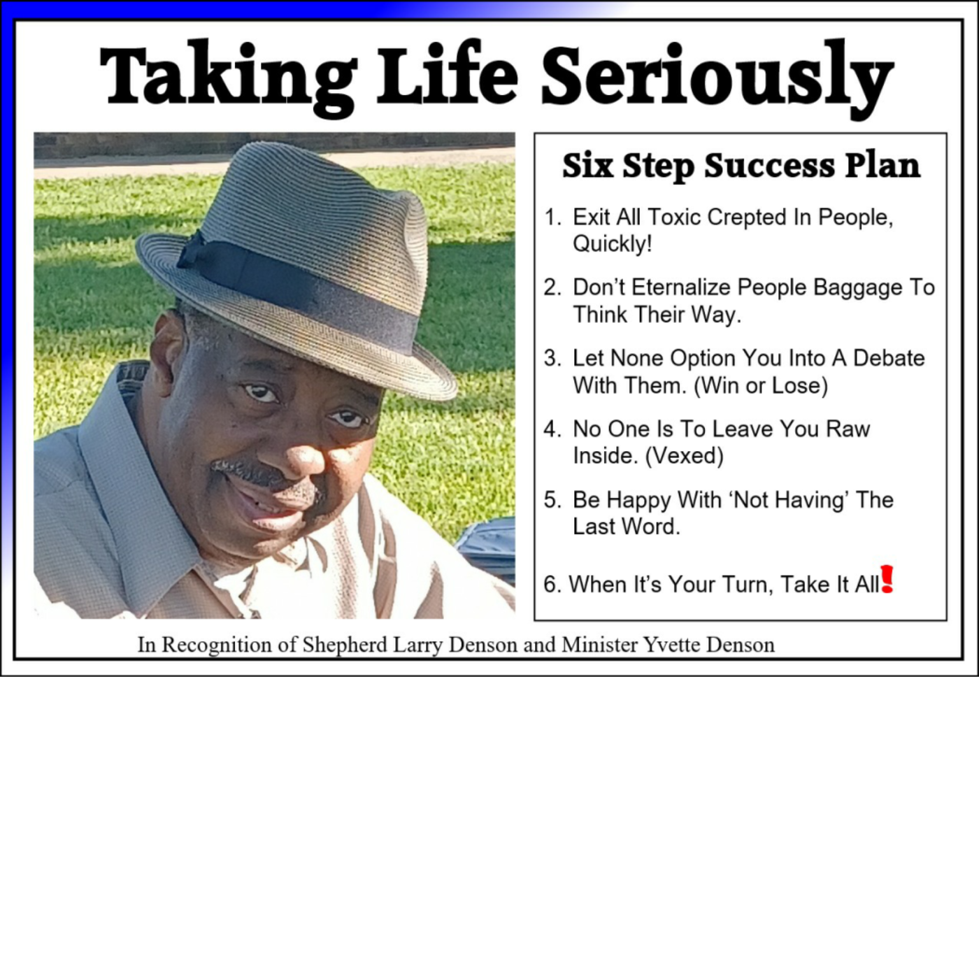 , Name: Larry Denson, App: Blessing, Ver: Gen 11:2 Exit: 01/28/27